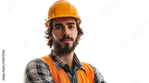 Construction worker looking to camera. isolated on white background