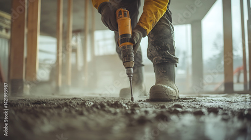 Construction Worker Using a Drill on Concrete