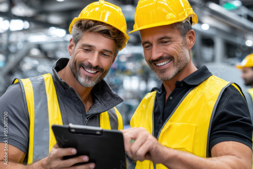 construction, men at work, warehouse, tablet, project, detail, teamwork, safety, helmet, discussing, industrial, bright, tied-up, midday, professional, planning, site, collaboration, smiling, efficiency, technology, checking, information, equipment, environment, inspection, communication, productivity, industry, management, labor, resource, skill, clipboard, machinery, meeting, strategy, blueprint, manpower, consultation, leadership, dynamic, adult, man
