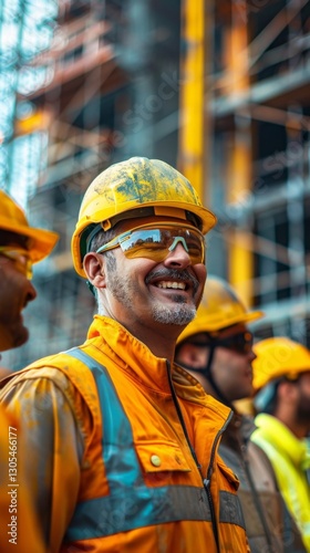construction, men at work, safety-gear, helmet, teamwork, building site, construction site, smiling, daylight, architecture, labor, industry, workwear, scaffolding, tool, progress, machinery, urban development, collaboration, people, engineering, structure, skill, dedication, camaraderie, professional, smile, yellow, hard work, project, manpower, man, excitement, confidence, landscape, community, city, transportation, safety, professionalism, development, productivity