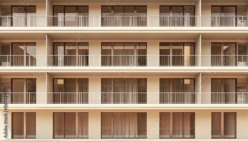 Contemporary Architecture: Modern Building Facade, Minimalist Style with Balconies, Copy Space