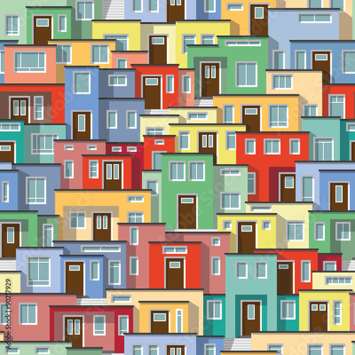 house, apartment, building, home, architecture, background, pattern, window, door, city landscape, city, colourful, colours, red, yellow, green, blue, illustration, vector