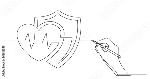 continuous line drawing vector illustration with FULLY EDITABLE STROKE of business concept sketch of heart health protection