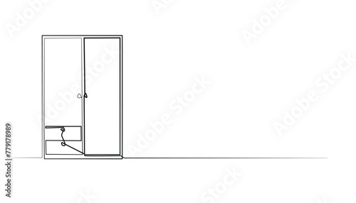 continuous line of clothes storage cupboard.flat wardrobe illustration drawn in one vector line. single line wardrobe home interior