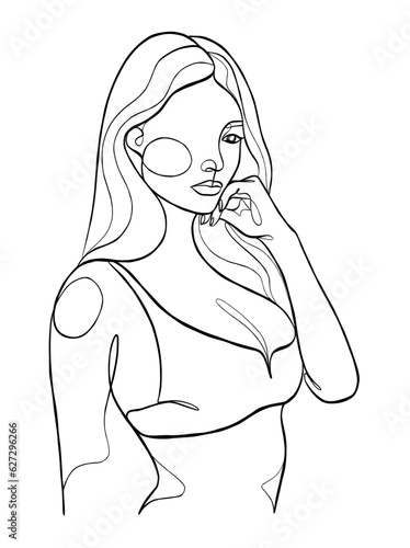 Continuous one line drawing of minimalist woman. Vector illustration.