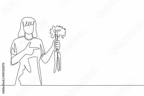 Continuous one line drawing woman holding some carrots with the tips of the leaves still thick. Source of vitamins and minerals. International Carrot Day. Single line draw design vector illustration