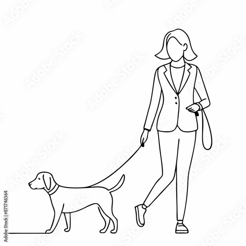 continuous single line drawing of a well-dressed smart woman walking with her dog vector art illustration (20)