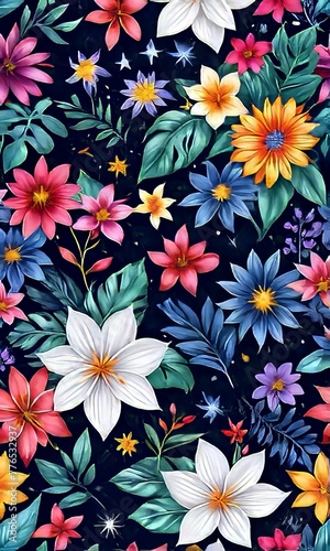 Contrast between bright flowers, dark background gives image special atmosphere, appeal, highlighting its beauty wonder. For home interior, bedroom, living room, childrens room to add bright colors.