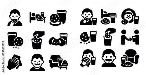 cookie, silhouette, solid, flat, outline, vector, set, meal, food, drink, breakfast, lunch, dinner, kitchen, dessert, beverage, eatery, nourishment, culinary, gastronomy, nourishment, coffee, fast food, refreshment