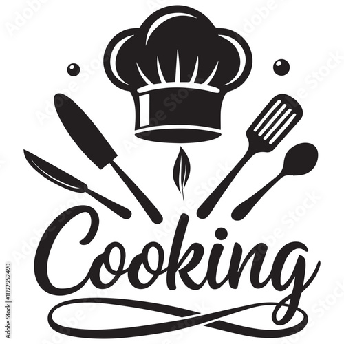 Cooking Logo Design – Chef Hat and Kitchen Utensils Vector Art .