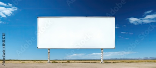 Copy space image Large white blank billboard or promotion poster displayed outdoors against a backdrop of blue sky Ideal for marketing announcements and details
