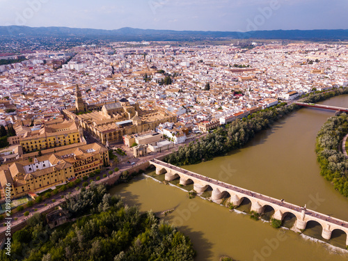 river, bridge, cordoba, mosque, cathedral, spanish, andalusia, guadalquivir, roman, arch, water, historic, holiday, aerial, view, drone, vintage, ancient, antique, europa, european, city, symbol, landmark, retro, historical, history, arched, travel, landscape, scene, architecture, spain, building, day, sunny, touristic, panoramic, city landscape, riverside, tower, holiday maker, mediaeval, town