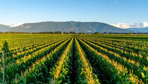 cornfield, crop, agriculture, farm, landscape, summer, mountain, vale, nature, rural, field, green, gold, sunlight, horizon, row, plant, growth, harvest, farmland, generating, panoramic, scenic, vista