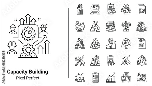 Corporate Capacity Building & Organizational Growth Icon Set – Editable Stroke