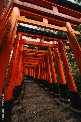 architecture, japan, temple, kyoto, torii, building, gate, shrine, asia, travel, red, corridor, wood, japanese, orange, palace, landmark, column, city, interior, paseo, wooden