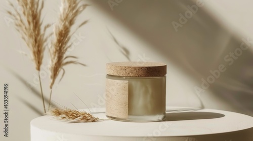 cosmetic, jar, cream, skincare, natural, bamboo, product, beauty, organic, healthy, light, shadow, wellness, design, cardboard box, container, minimalist, spa, health, well-being, fabric, background, neutral, beige, warm, sunlight, texture, lifestyle, essential, blank, bodycare, face cream, moisturiser, lotion, plant, aesthetic, branding, display, nobody, soft, calm, serene, contemporary