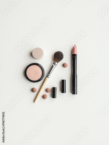 cosmetic, make-up, beauty, lipstick, brush, set, powder, minimalist, arrangement, grooming, tool, daily, routine, skincare, vanity, hygiene, face, essential, natural, look, brush, cosmetic, display, light, background, fashion, style, personal, care, application, contour, reddening, designer, cream, palette, lip, colours, neutral, shades, clean, aesthetic, decor, elegance, generative, ai