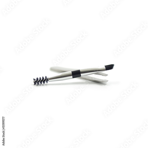 Cosmetic set : spoolie brush, tweezers, angled brush isolate on white background