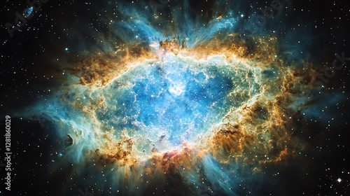 Cosmic Nebula: A Celestial Tapestry of Blue and Gold