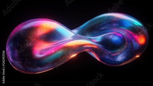Cosmic Nebula: An Abstract 3D Render of a Luminous, Iridescent, Fluid Form Resembling a Galaxy or Nebula. The Form is Smooth, Shiny and