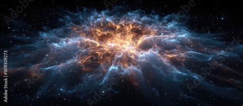 Cosmic Nebula Explosion Orange & Blue Gas Cloud in Space. Background Stars, Sci-Fi Wallpaper