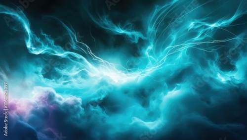 cosmic nebula, swirling blue gases, ethereal wisps, deep space, celestial formation, glowing energy, interstellar clouds, vibrant cyan, dark background, abstract galaxy, dreamlike atmosphere, luminous