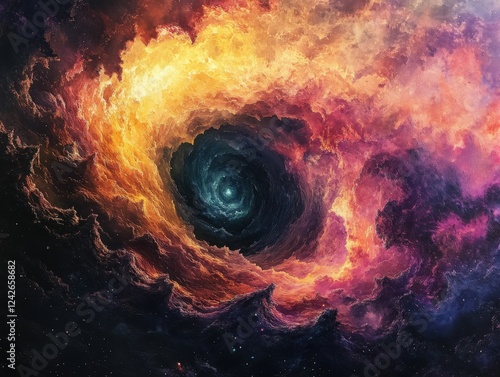 Cosmic Nebula Vortex: Fiery Hues and Celestial Swirl Generated AI