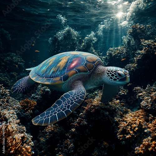sea turtle, turtle, cosmic, galaxy, star, nebula, space, ocean, swimming, abstract, watercolor, painting, spiritual, dream, journey, peace, magical, fantasy, marine life, concept, sea, underwater, diving, water, animal, blue