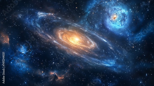 Cosmic spiral galaxies in a vast and dark expanse of space.
