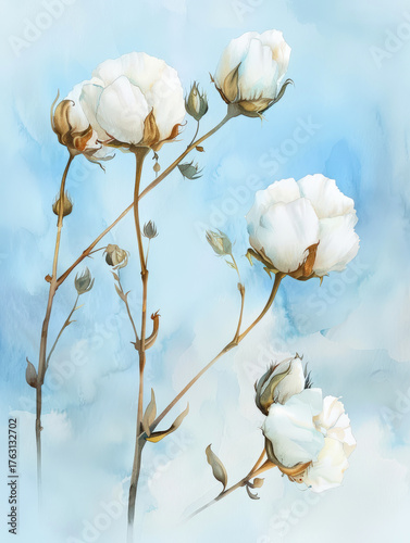 flower, cotton, simplicity, agricultural, design, blue, floral, leaf, background, delicate, art, white, nature, watercolor, botanical, arrangement, pattern, style, bloom, plant, painting, soft, vintage, beauty, card, brown, invitation, artistic, artwork, drawing, elegant, pretty, print, seasonal, wallpaper, decoration, fabric, orange, textile, wildflower, aesthetic, graceful, harmony, motif, linen, trendy, textured, vertical, postcard