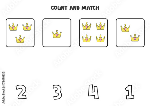 Counting game with yellow crowns. Math worksheet.