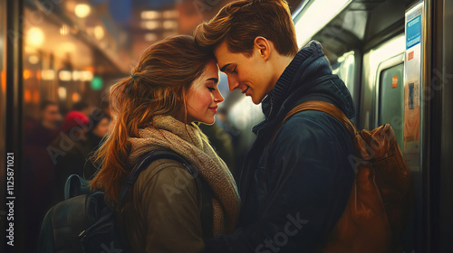 couple, love, romance, human relationships, subway, train, commute, urban, city, travel, togetherness, intimacy, affection, hug, hugs, connection, black background, studio shot, isolated, animal portrait, studio photography