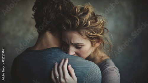Couple Hugging, Woman's Head Leaning on His Shoulder