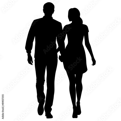 Couple of young guy and girl are walking with keep hand on other person modern pose vector silhouette