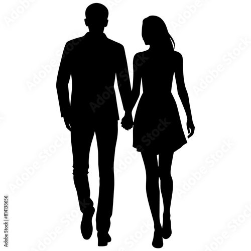 Couple of young guy and girl are walking with keep hand on other person modern pose vector silhouette