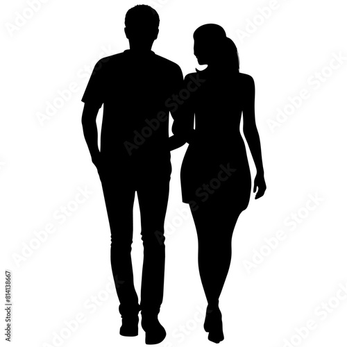 Couple of young guy and girl are walking with keep hand on other person modern pose vector silhouette