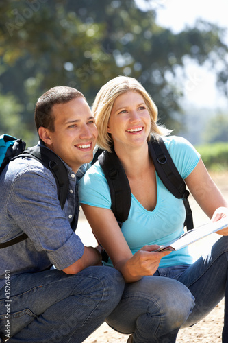 couple, country, walk, map, people, adult, caucasian, female, woman, male, man, 30s, 30s, outdoors, outside, countryside, rural, path, track, walking, active, backpack, reading, holding, hike, hiking, portrait, vertical, together, enjoying, happy, smiling, summer, sun, sunshine, lifestyle