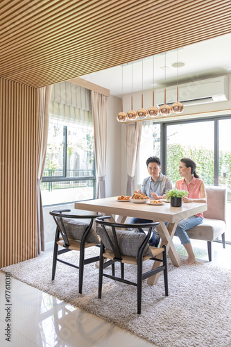 eating, couple, fried, knife, chicken, happy, young, food, asian, house, home, table, man, people, meal, black, family, american, dinner, smiling, sitting, lunch, woman, female, talking, friends, male, together, enjoyment, healthy, party, fun, indoor, portrait, mixed, indoor, race, friends, kitchen, eat, adult, looking, relaxed