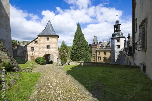Courtyard of medieval Gothic and Renaissance style castle in Frydlant, Czech Republic
