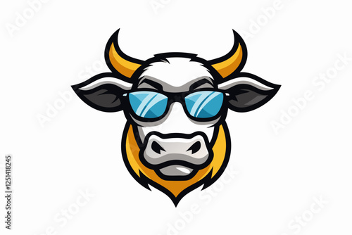 cow head with sunglasses vector logo