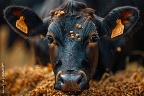 cow, barn, realistic, natural light, farm animal, agriculture, animal husbandry, farming, rural, domestic animals, feeding, indoor, farm animal, cattle, high-quality, animal welfare, pastoral, authentic, vibrant, hi-res