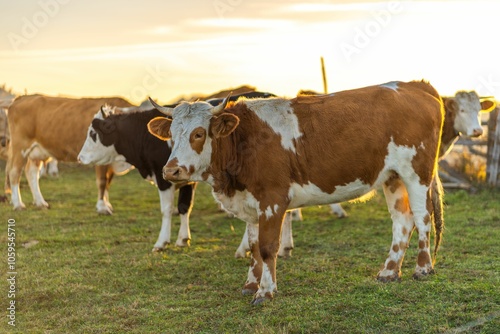 cow, grazing, pasture, sunlit, rural, farm, golden hour, evening, agriculture, farm animal, nature, animal, field, grass, countryside, herd, bovine, farming, sunset, outdoors, landscape, peaceful, serene, tranquil, domestic, mammal, environment, scenic, pastoral, idylli