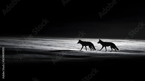 coyote, wildlife, animal, animal, monochrome, black-and-white, winter, field, night, darkness, silhouette, predator, mammal, nature, wild, rural, landscape, frost