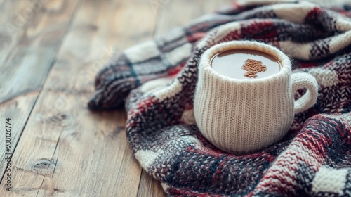 cosy, autumn, hot drink, hot, beverage, cup, foulard, warm, comfort, relaxation, cosiness, snug, tranquil, soothing, serene, peaceful, sweater, knitted, wool, plaid, woolen, textile, fabric, texture, natural, wood, table, ground, floor, indoor, lifestyle, interior, vibe, cold, weather, seasonal, homelike, calmness, contentment, leisure, enjoyment