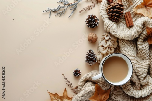 autumn, hot drink, leaf, blanket, cosy, warm, fall, morning, cup, latte, knitted, beige, surface, decorative, design, still life, lifestyle, relaxation, comfort, inspiration, seasonal, nature, home, decoration, aesthetic, style, photo, photo