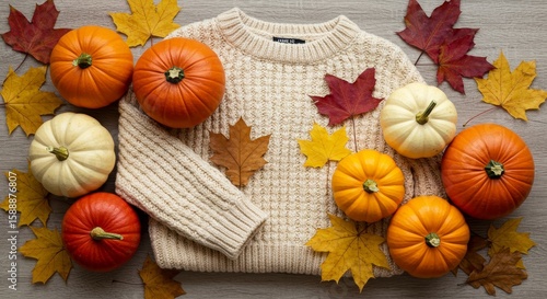 autumn, pumpkin, leaf, sweater, knitwear, fall, season, foliage, comfortable, warmth, harvest, rustic, thanksgiving, cosy, seasonal, maple, colourful, arrangement, decoration, orange, red, yellow, beige, woolen, tabletop, background, design, concept, halloween, october, november, september, countryside, autumn, style, clothing, vintage, nature, bright, textured, pattern, wood