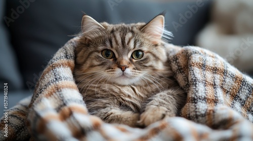 cat, pet, animal, cosy, blanket, relaxation, domestic, fur, felino, closeup, comfort, expression, enjoyment, sofa, warm, cute, fluffy, sitting, home, peaceful, portrait, indoor, lazy, gaze, whisker, paw, young, eye, resting, texture, happiness, lifestyle, grooming, companionship, personality, quiet, playful, harmony, coat, calmness, snuggling, environment, cuddly, behaviour, warmth, affection, joy, serene