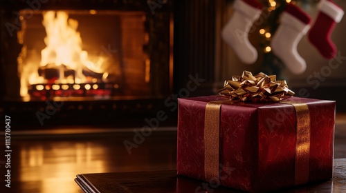 christmas, gift, fireplace, present, holiday, celebration, cosy, warm, festive, decoration, red, gold, bow, flames, light, home, indoor, present, box, wrapping, winter, stocking, season, joy, cheer, tradition, family, love, comfort, ambience, atmosphere, glow, hearth, decor, snug, tranquil, peaceful, serene