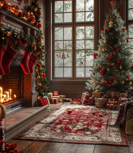 christmas tree, fireplace, christmas, present, decoration, snowflake, light, warmth, family, togetherness, christmas eve, santa, sock, fire, wood, village, traditional, western, culture, custom, holiday, celebration, joy, festive, peaceful, beautiful, blessing, greeting, wishes
