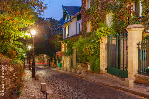 Cozy empty street on Montmartre hill in the morning, Paris, France